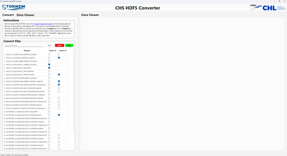 A Python GUI app for a USACE internship project to restructure data from custom HDF5 files into a table (CSV) format for easy reading and access. Translated MATLAB app to a Python app using PySide6 for the GUI and multiprocessing to process files. For small datasets, users can also view, filter, and graph data with the Data Viewer tab. Filtered datasets can also be exported. The program only accepts HDF5 files from the Coastal Hazards Systems (CHS) database here.